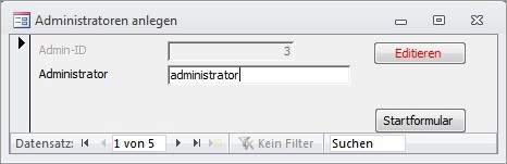 Mit Hilfe dieser Formulare werden die Daten in den Tabellen Hauptbenutzer und Administratoren gepflegt. Hierzu sind Adinistratorrechte erforderlich.