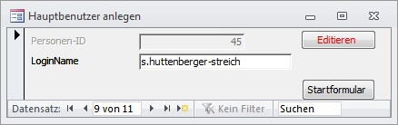 Hauptbenutzer müssen in der Tabelle Hauptbenutzer angelegt werden. Diese Gruppe kann Daten lesen, ändern, neu erfassen und teilweise auch löschen. |