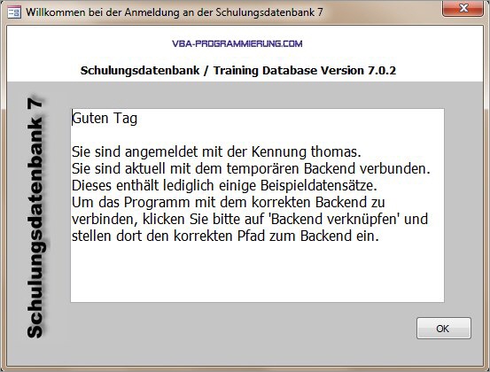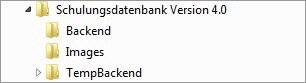 Im Ordner „Schulungsdatenbank Version 7“ liegt das Frontend. Der Ordner Backend enthält das Backend. Dieser Ordner sollte, wie bereits erwähnt, auf ein beliebiges Netzlaufwerk gelegt werden.