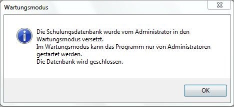 Key-User, Training-Koordinatoren und User ohne Rechte (Recherche-Frontend) können die DB nicht starten, so lange dieser Modus aktiviert ist.