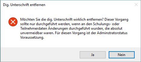 In der neuen Version 7.3.6 ist es möglich, die digitale Unterschrift, mit der eine Schulung unterschrieben wurde, wieder zu entfernen: