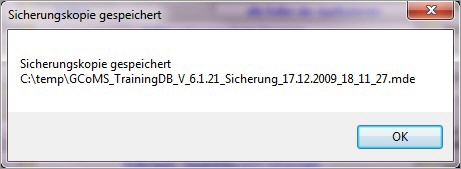 Die Sicherungskopie wird in dem vom Administrator unter „Datenbankanpassungen“ festgelegten Verzeichnis abgespeichert.