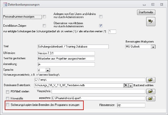 Datensicherheit ist bei Datenbanken mit wichtigen Informationen ein wichtiges Kriterium. Aus diesem Grund wurde in die Schulungsdatenbank 7 eine automatische Backup-Funktion integriert.